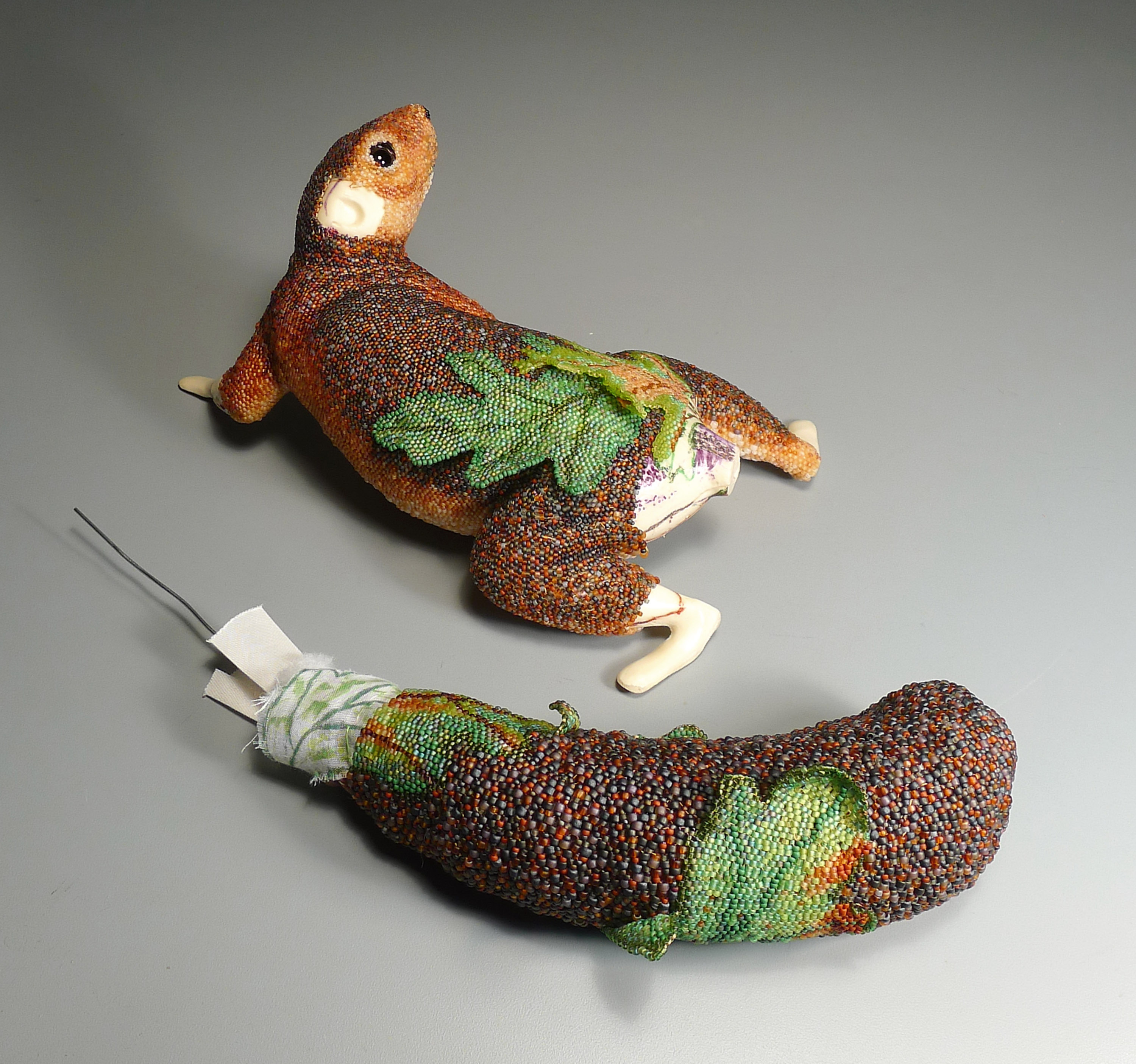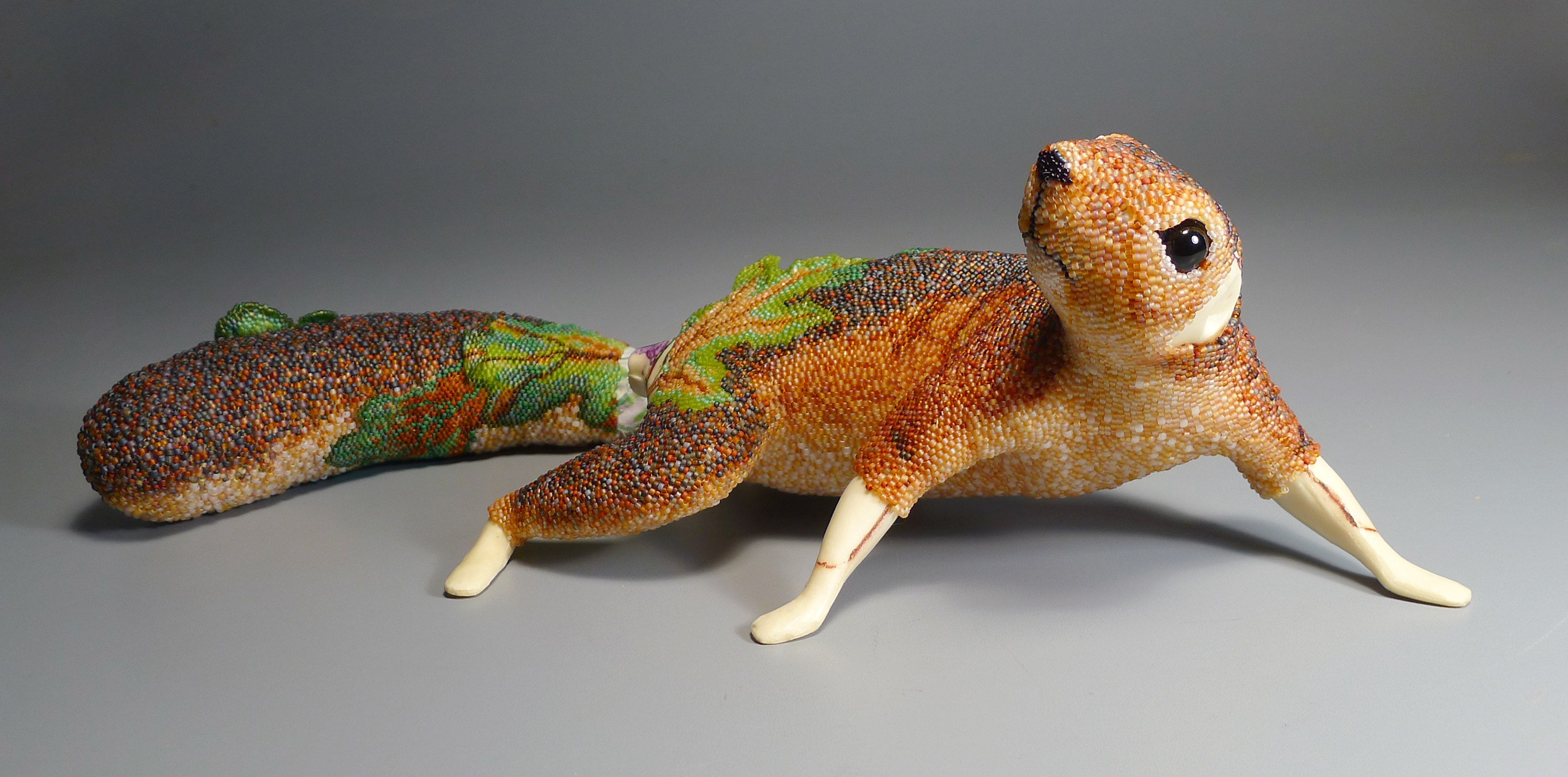 Social Climber (Squirrel) was completed just in time for my single-artist show, Private Thoughts: Beadwork Sculpture by Leslie Grigsby for which my sculptures formed the loan exhibition at the New York Ceramics & Glass Fair (January 19-22, 2017).